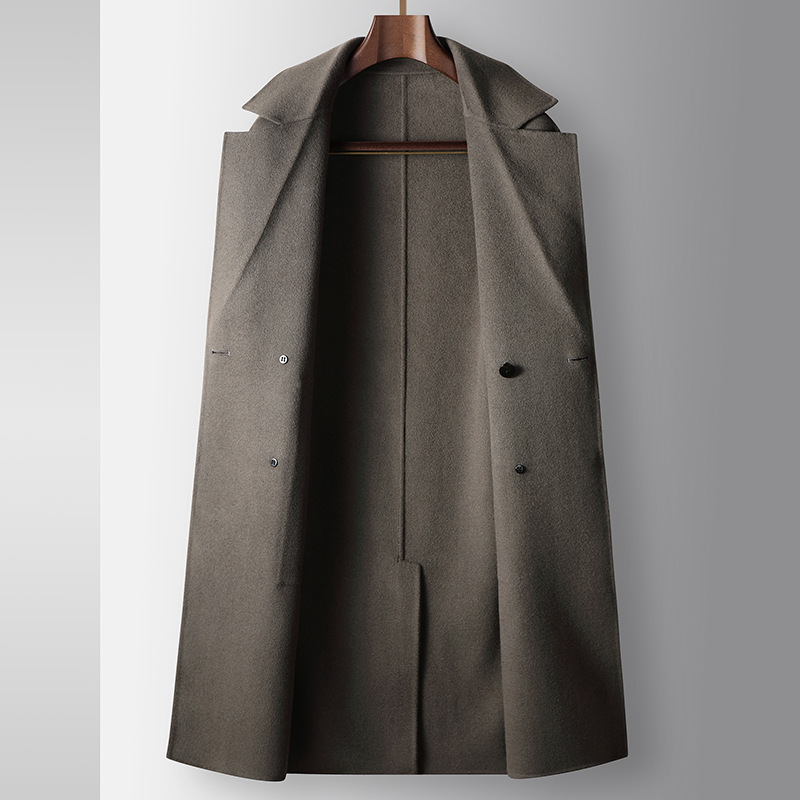 2025春秋冬季新款型男轻奢港风毛呢大衣双排扣西装领羊毛风衣外套