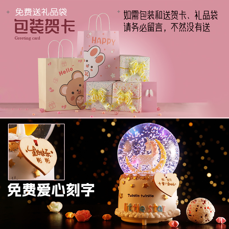 小白马音乐盒八音盒水晶球可旋转飘雪花卡通男女生儿童生日礼物