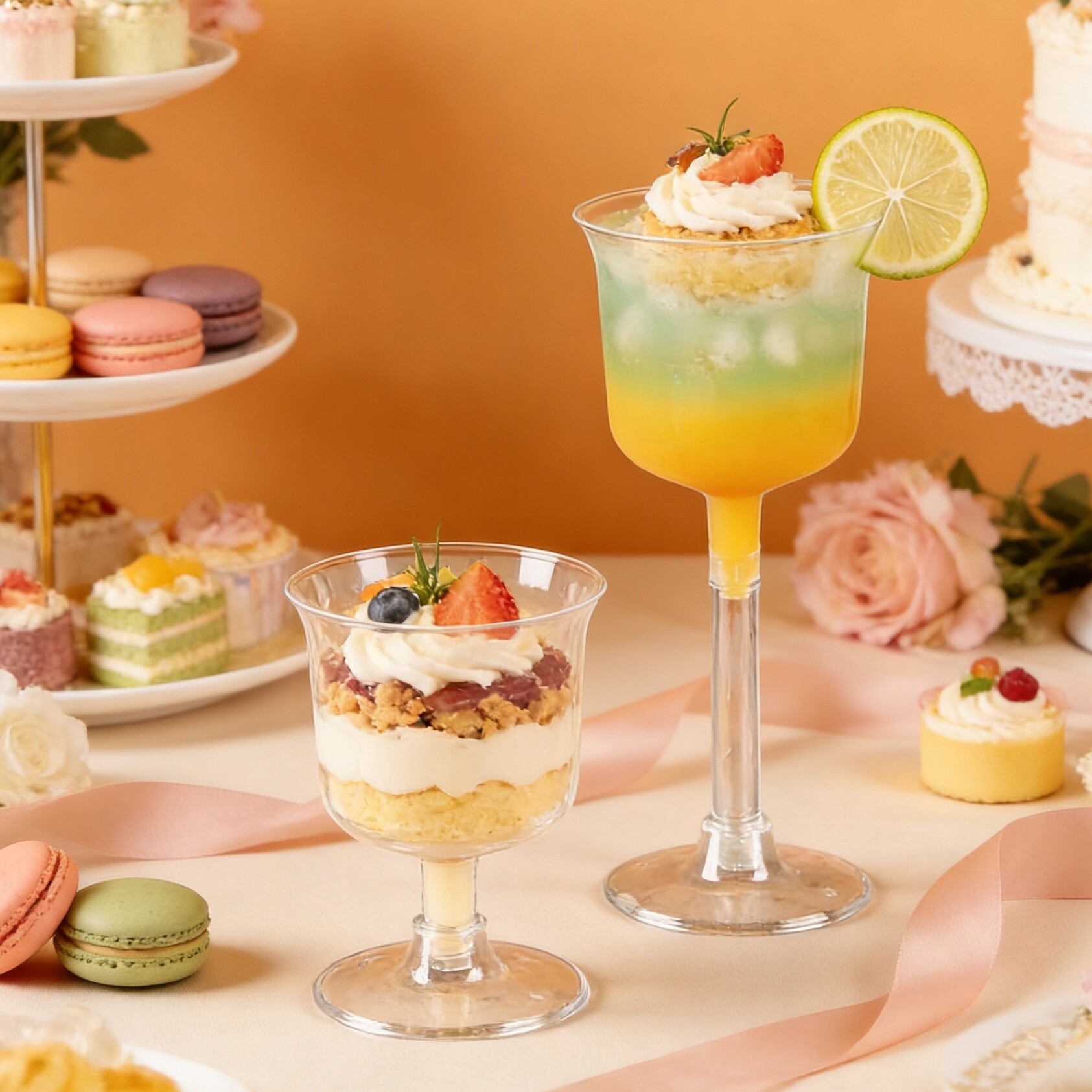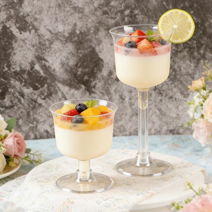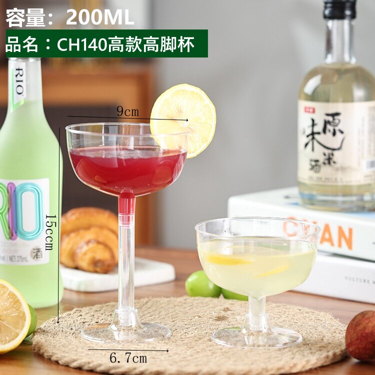 高脚鸡尾酒红酒香槟杯一次性冰淇淋慕斯布丁甜品台杯透明创意塑杯