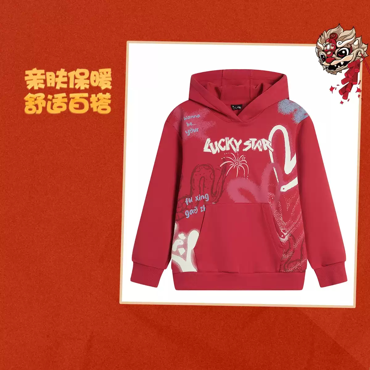 李宁儿童卫衣男女小大童2025秋季新款宽松纯棉套头长袖运动针织衫