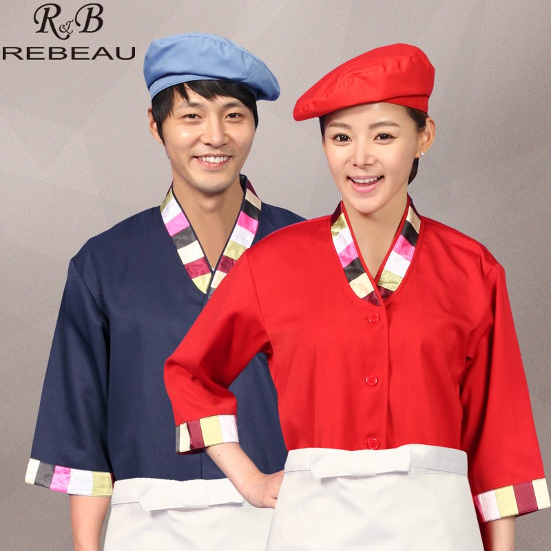 韩式厨师工作服七分袖酒店厨房男女韩国料理厨师长可绣logo可定制