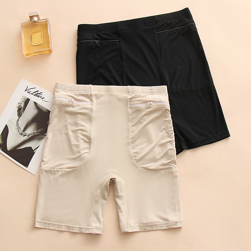 大码女士高腰防盗内裤带双拉链有兜加大口袋打底保险安全裤防走光