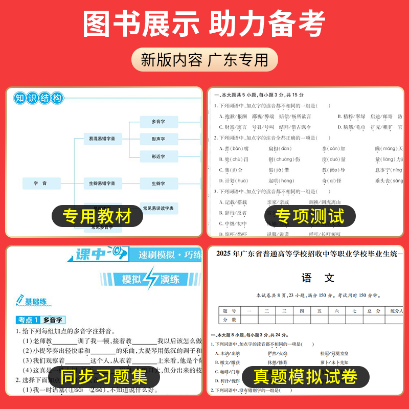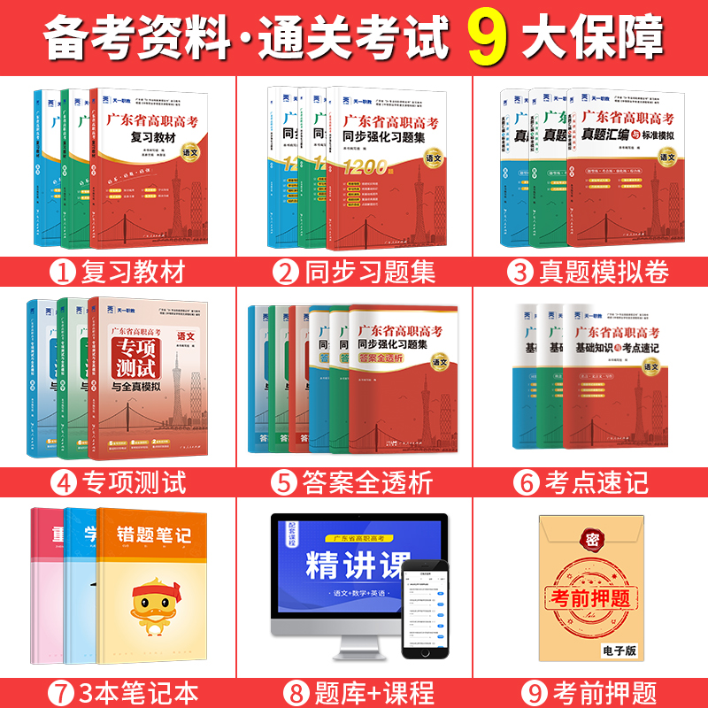 新版2026年广东省高职高考教材3+证书高职高考广东复习资料语文数学英语历年真题模拟试卷中高职生单招对口升学春季高考全套官方书