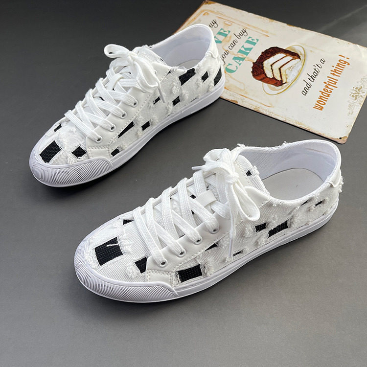 春夏帆布鞋男系带男鞋懒人板鞋透气低帮休闲潮鞋乞丐破洞网红布鞋