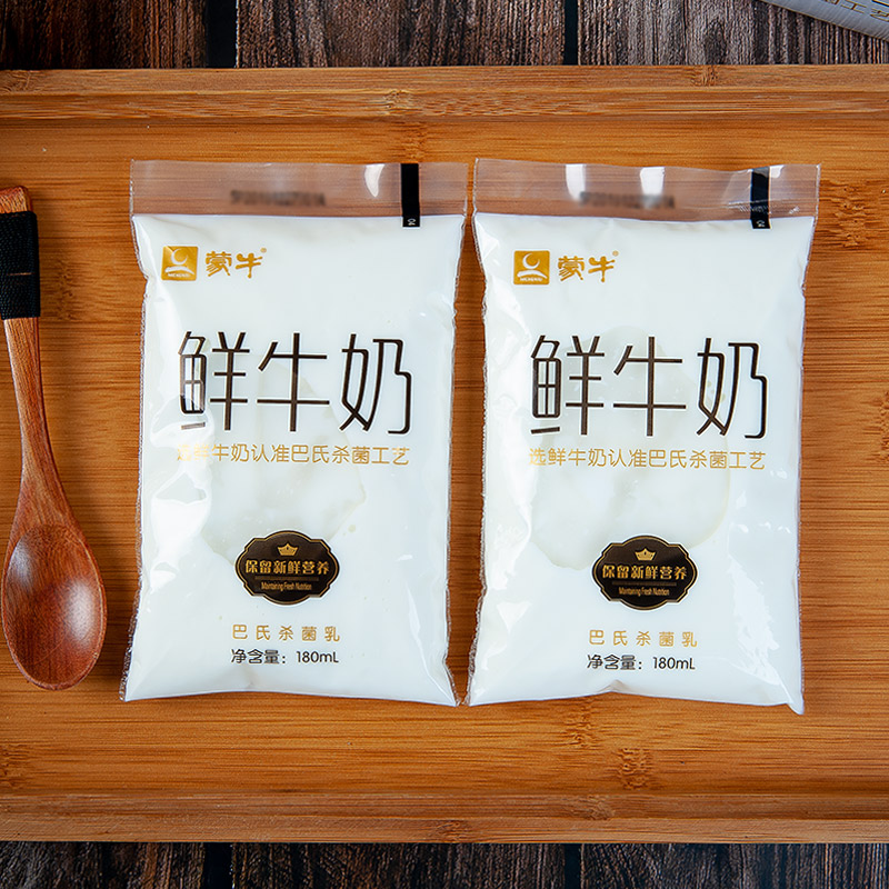 蒙牛鲜牛奶180m/袋纯牛奶白袋早餐奶巴氏杀菌整箱