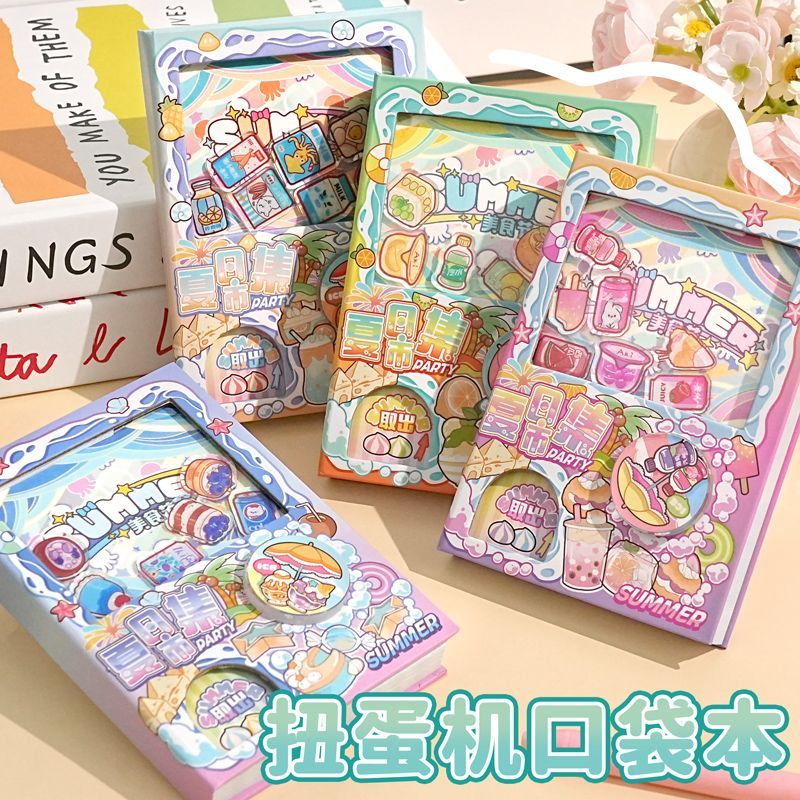 夏日集市扭蛋机机关本口袋创意趣味笔记本记账本可爱解压ins高颜值摇摇乐卡通2025a7儿童手账本女孩礼物玩具