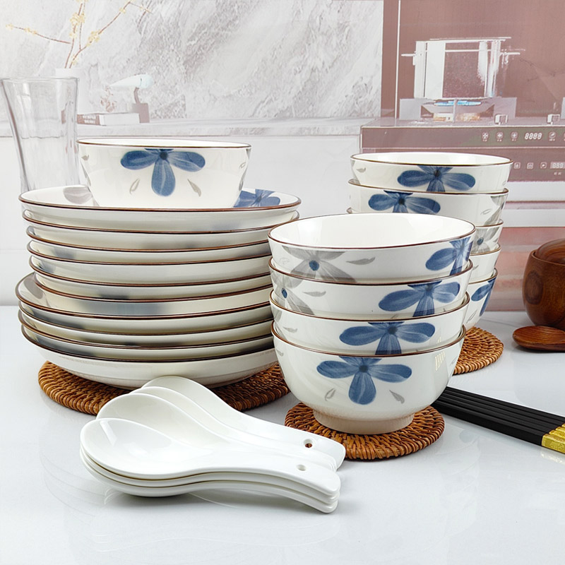 景德镇餐具套装2025新款高温釉下彩餐具碗盘家用陶瓷碗碟碗筷组合
