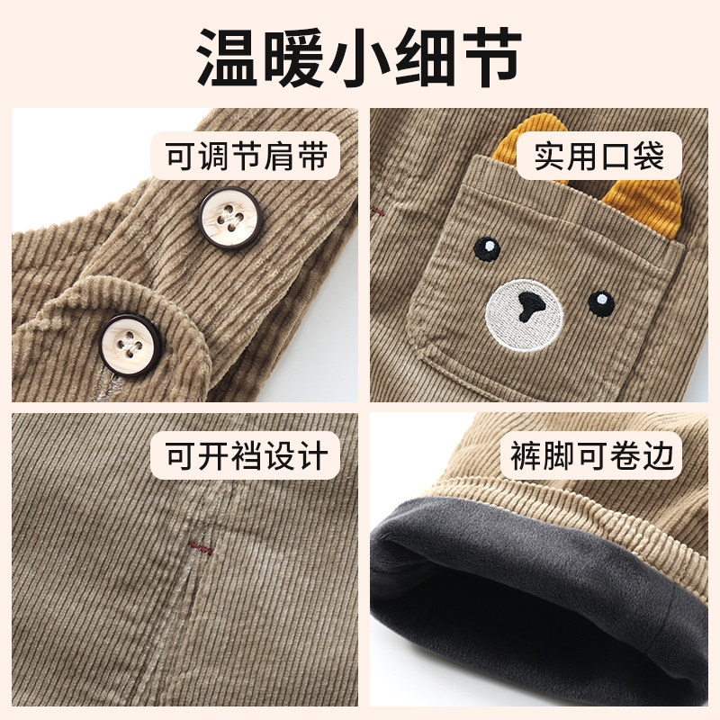 宝宝背带裤秋冬男童2025新款儿童灯芯绒一岁婴儿加绒加厚裤子秋季