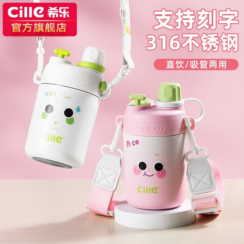 希乐保温杯女生j高颜值316不锈钢杯子儿童吸管杯学生上学水壶