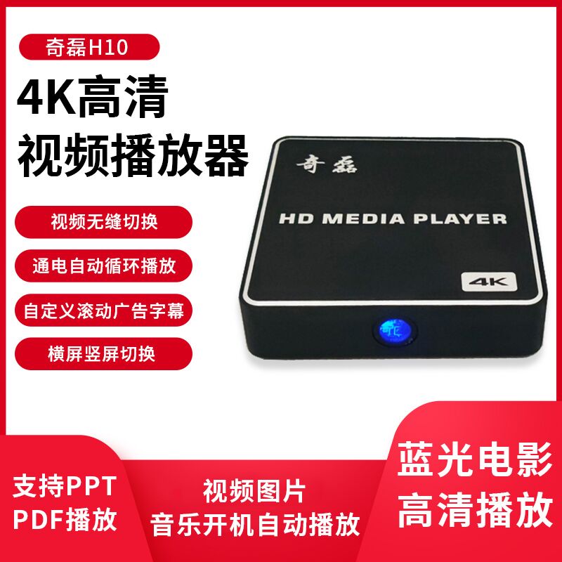 奇磊H10高清蓝光U盘播放器开机循环4K家用视频广告横竖拼接屏PPT