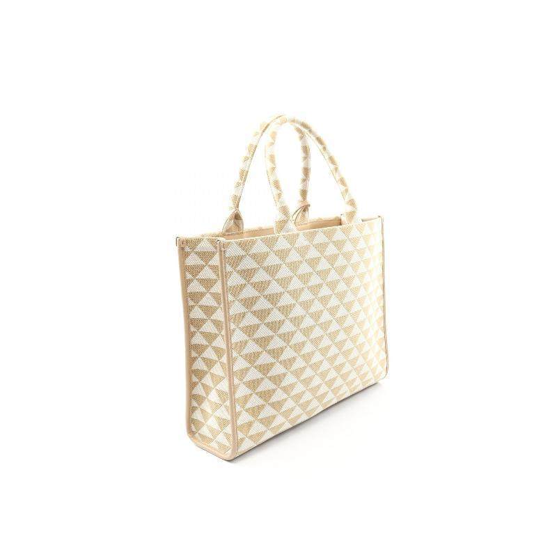 中古Prada普拉达女包A级95新tote bag托特包帆布托特包浅褐色