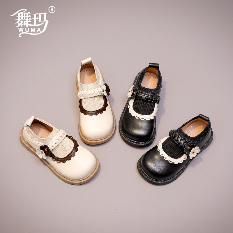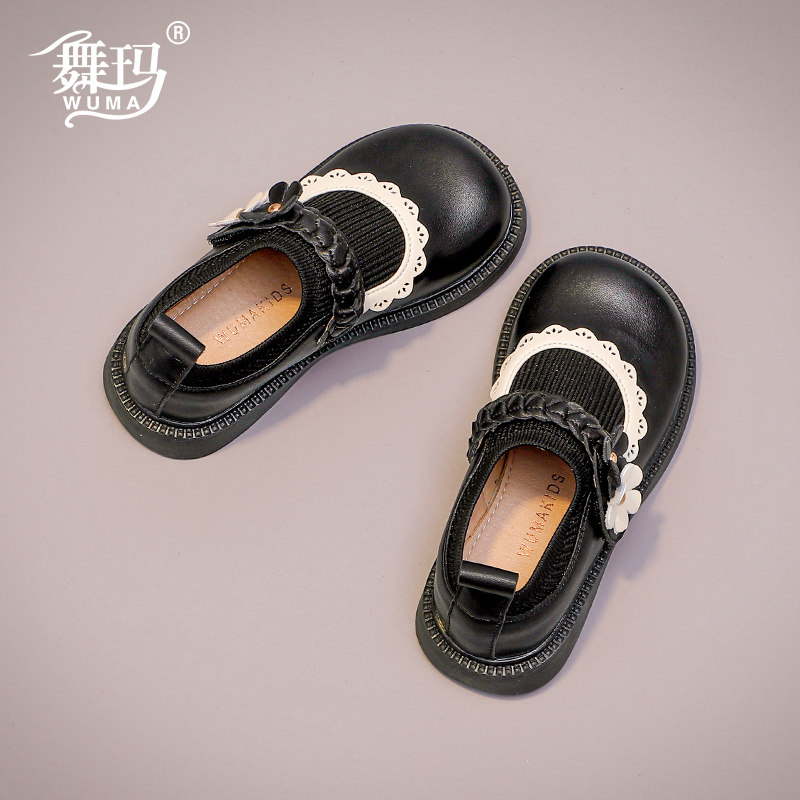 舞玛女童鞋子儿童公主鞋2026新款女孩春秋季软底百搭小皮鞋黑单鞋