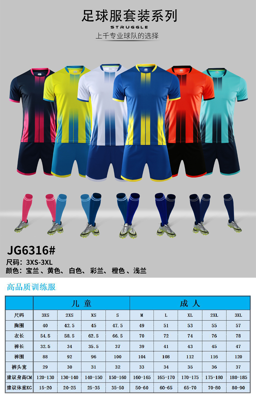 成人儿童学生短袖足球服套装比赛训练队服定制印刷字号6316白色