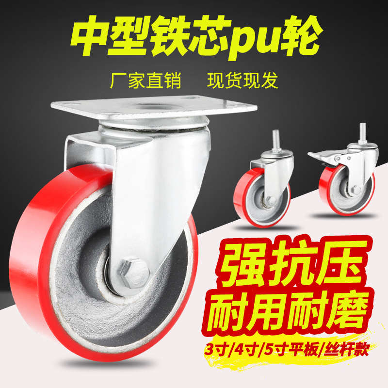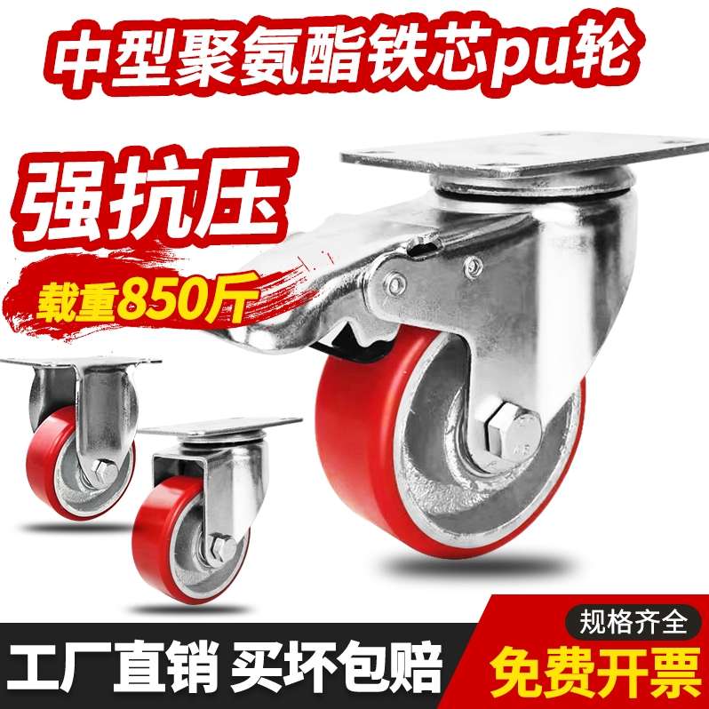 3寸铁芯聚氨酯万向轮轮子重型PU承重耐磨静音推车脚轮承重