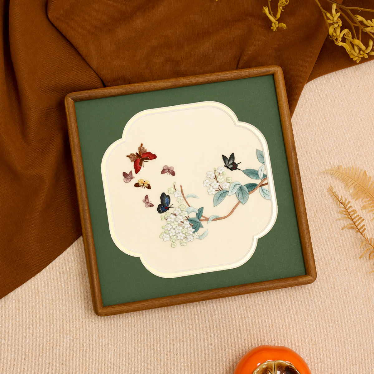 非遗苏绣纯手工真丝中式古典蝴蝶双面绣桌面摆件送礼长辈高级感