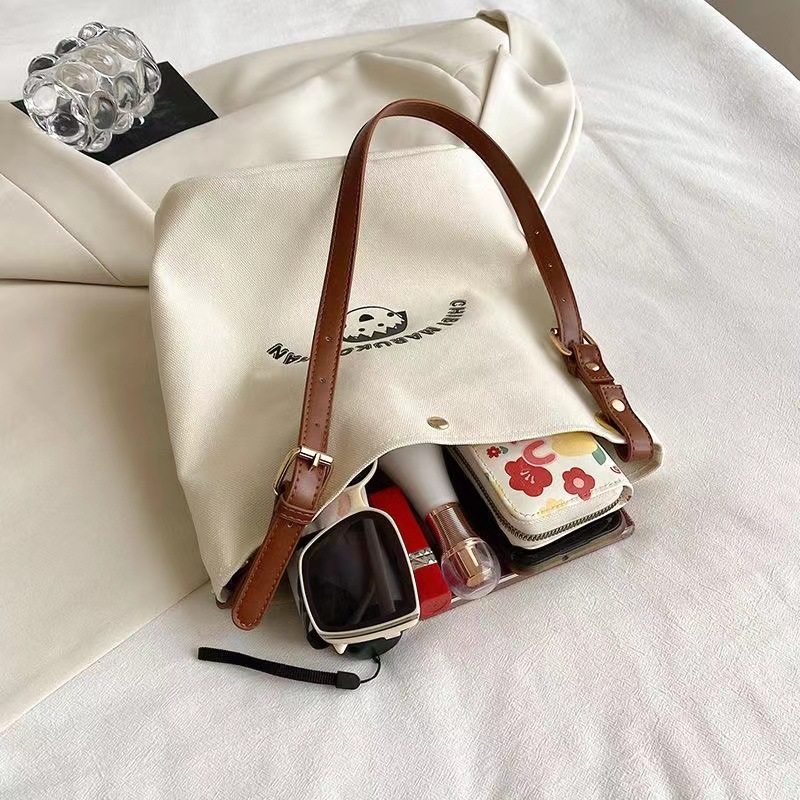 梦想家水桶包帆布上班族妈咪包单肩斜挎小众大容量女包通勤百搭