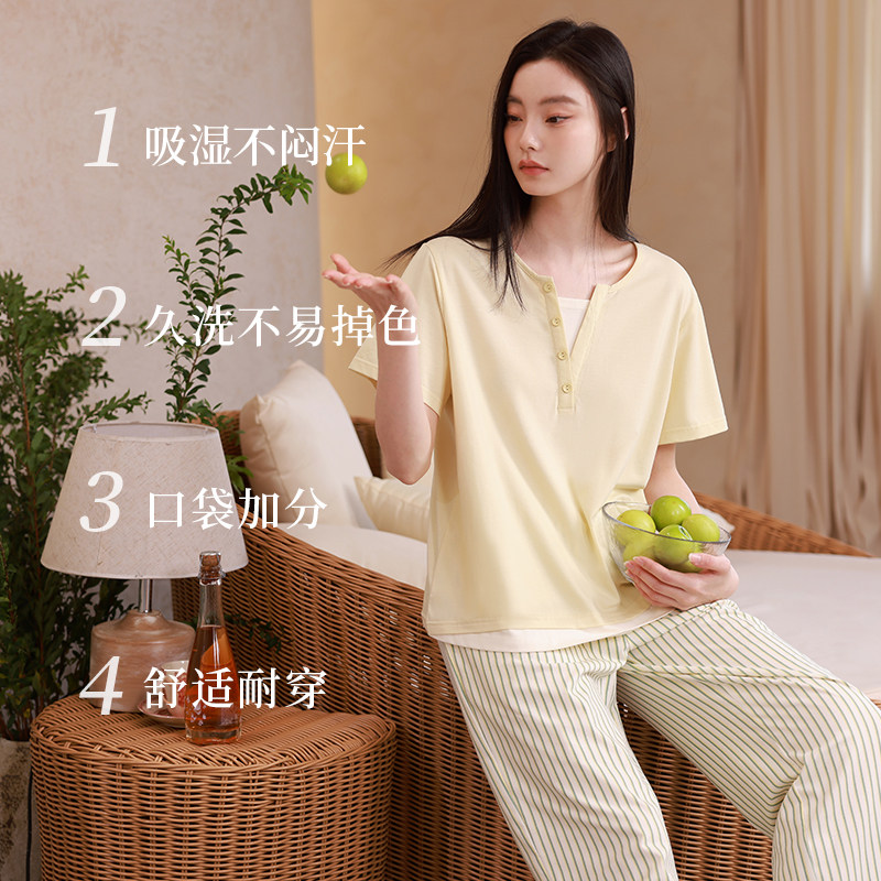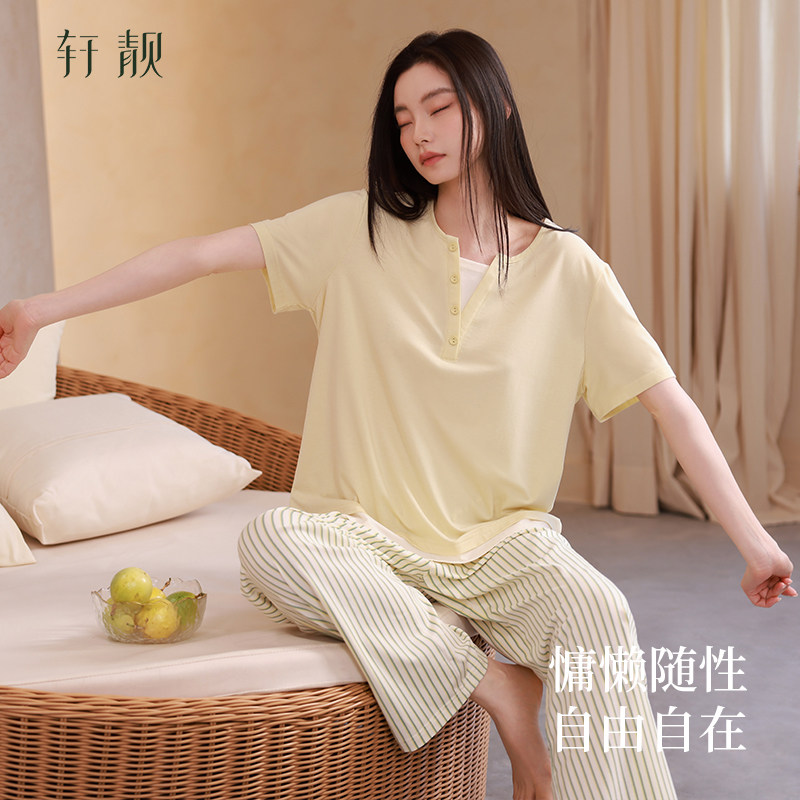轩靓松弛睡衣女夏季纯棉短袖长裤