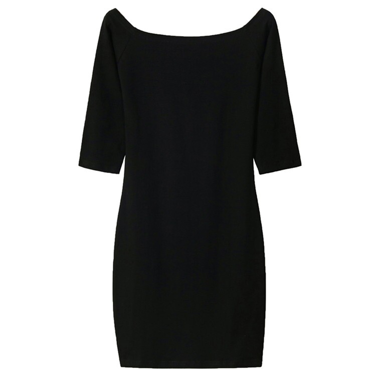 女装春秋新款露肩一字领中袖连衣裙七分袖修身性感显瘦包臀打底裙