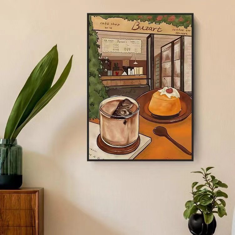 美式餐厅装饰画厨房挂画日式原木风咖啡厅餐边柜吧台摆画小资情调