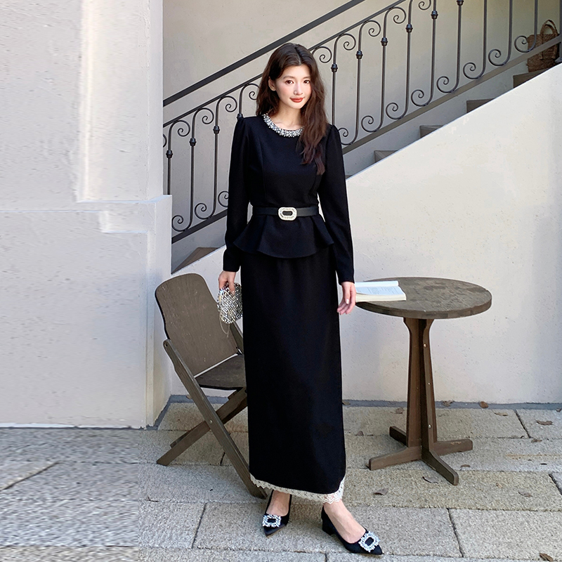 十三行品质 时尚套装新款气质显瘦荷叶边上衣半身长裙两件套7263