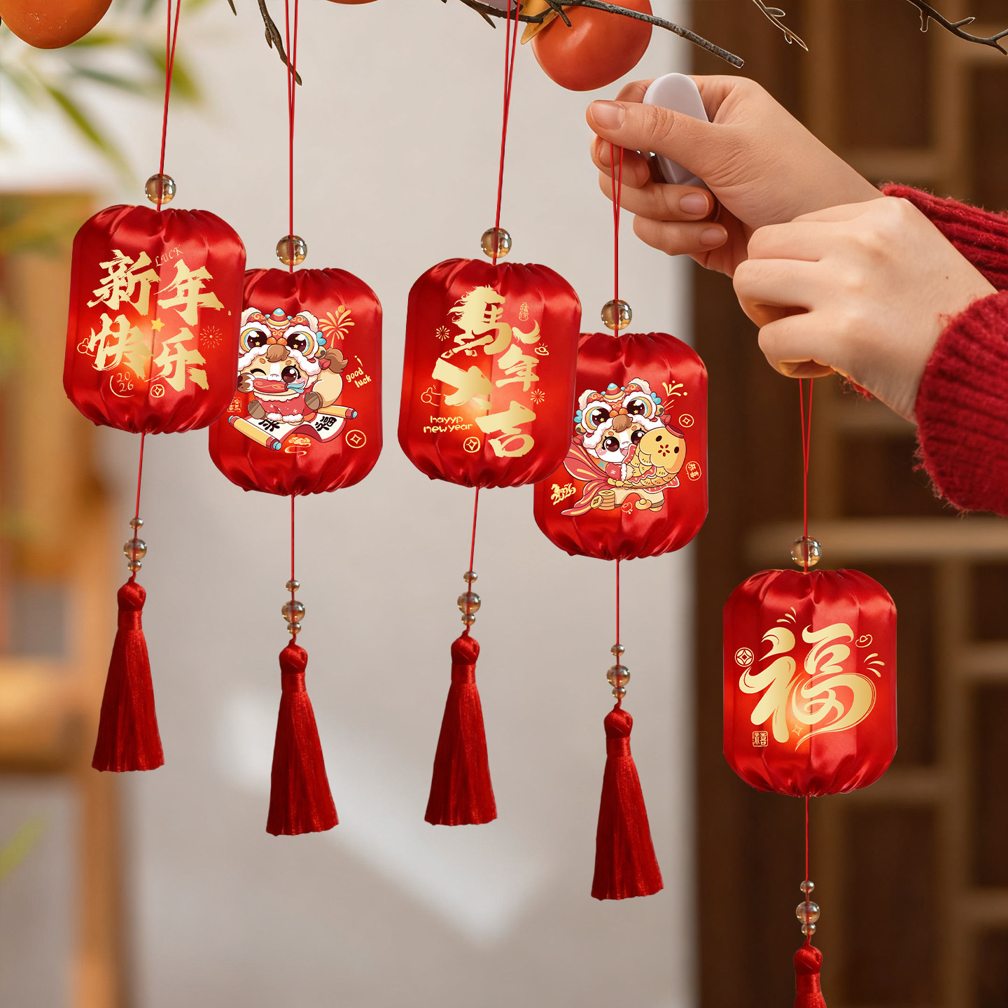 马年福字小红灯笼2026树上挂饰春节过年元旦发光氛围布置装饰挂件