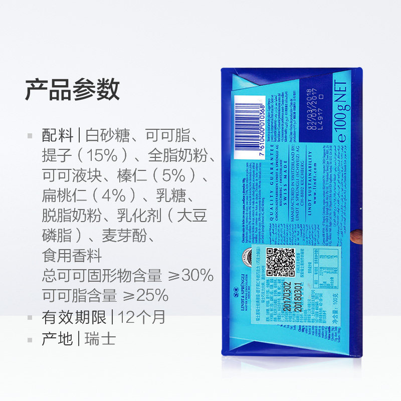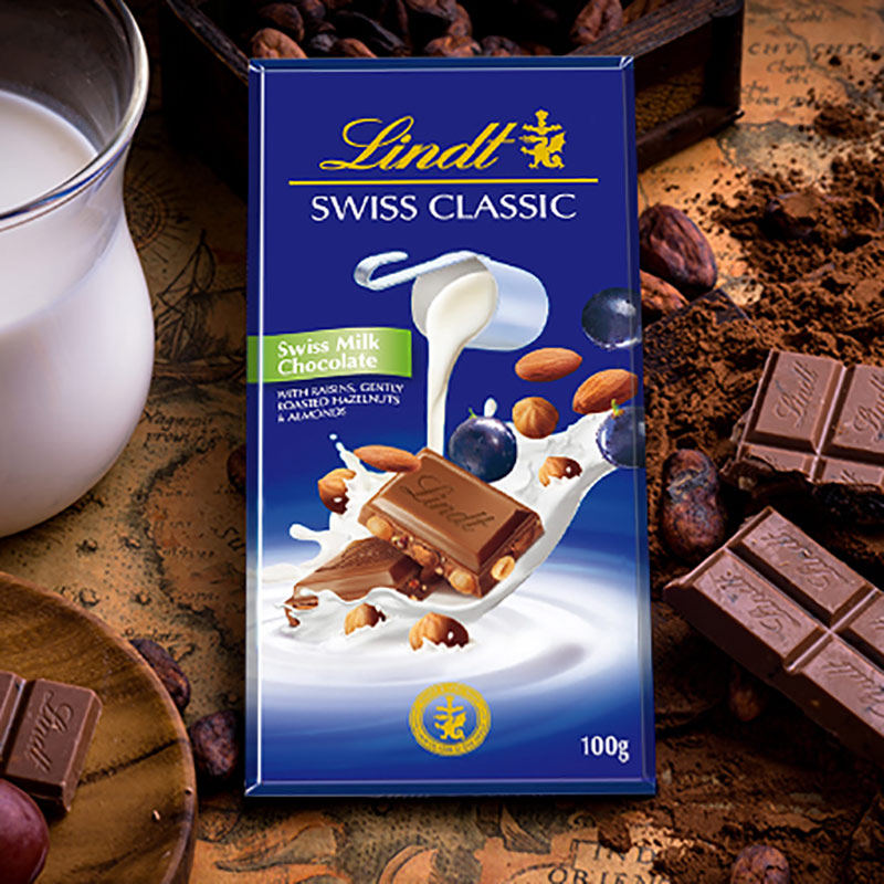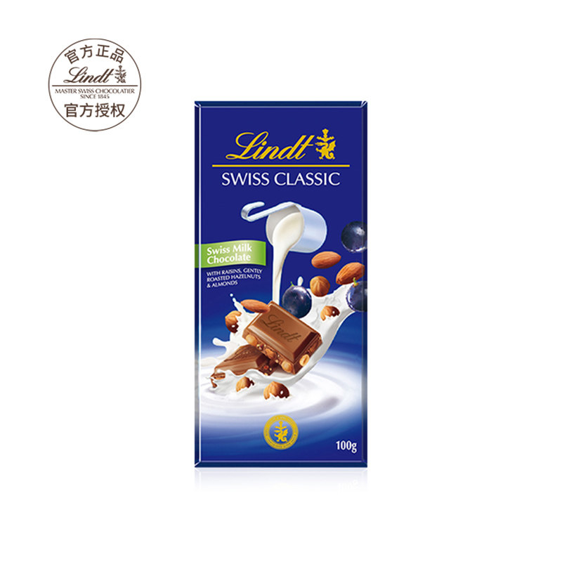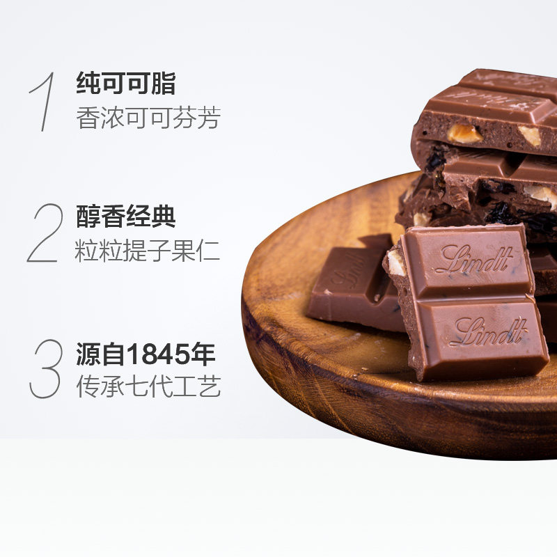 【正品行货】Lindt瑞士莲经典排装提子果仁牛奶巧克力零食