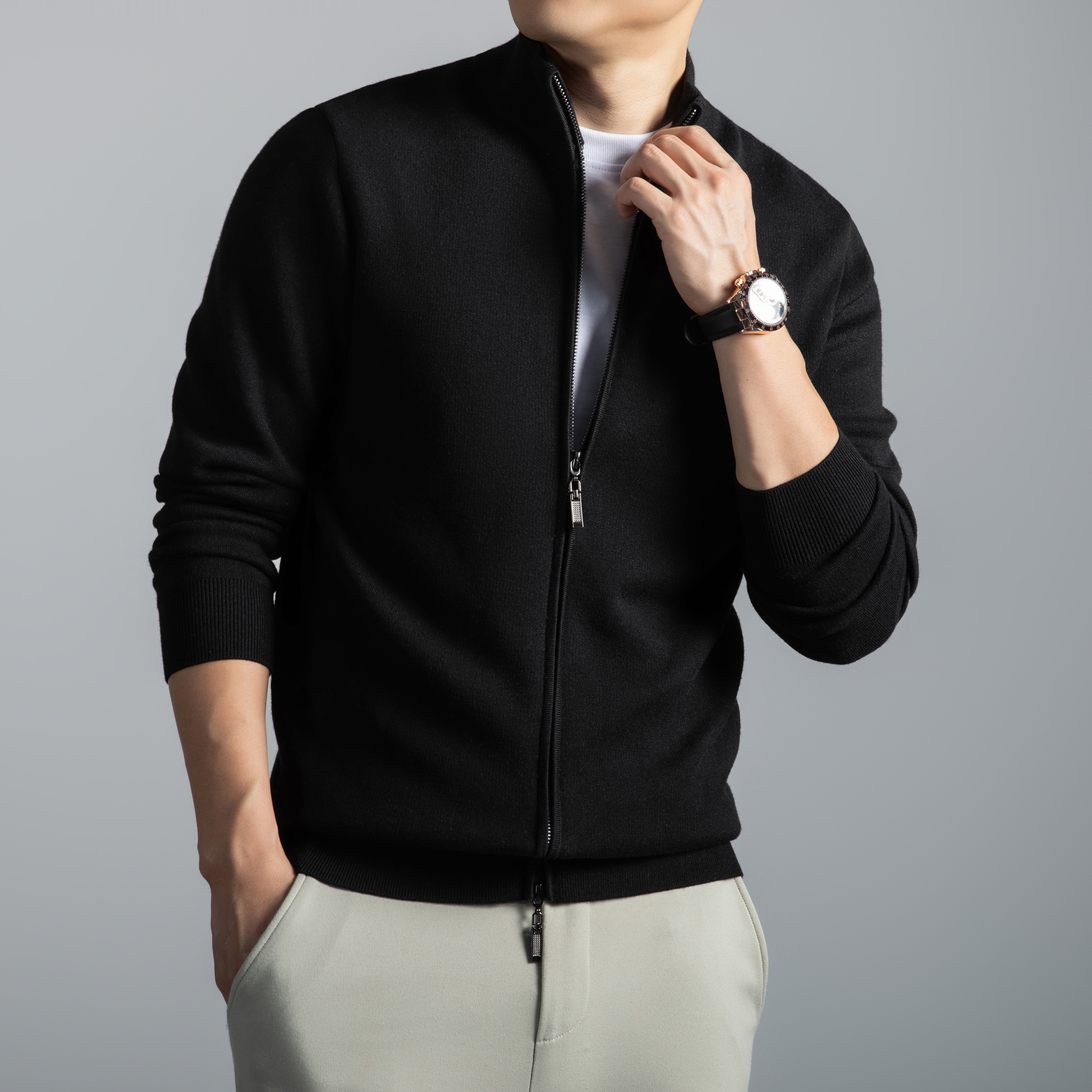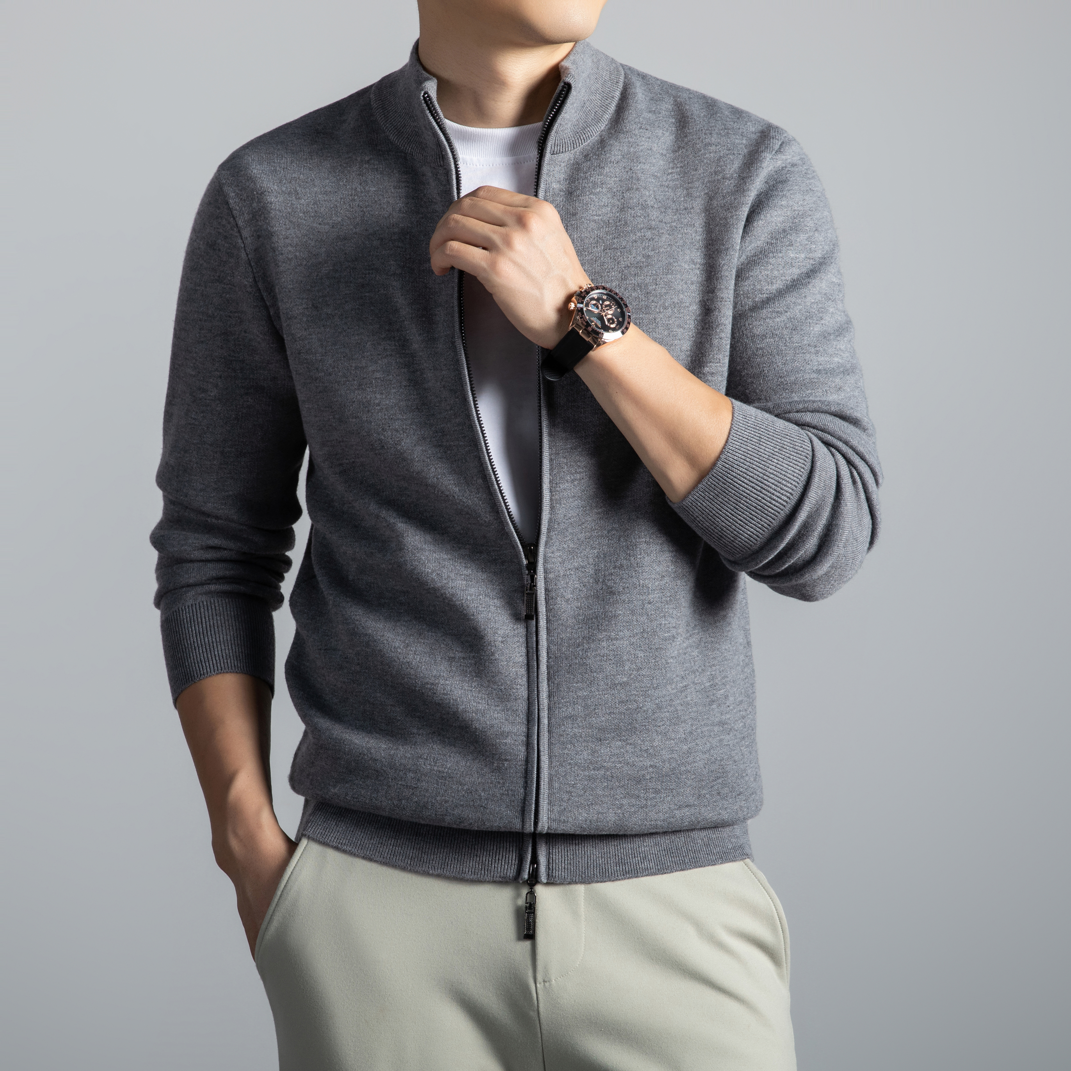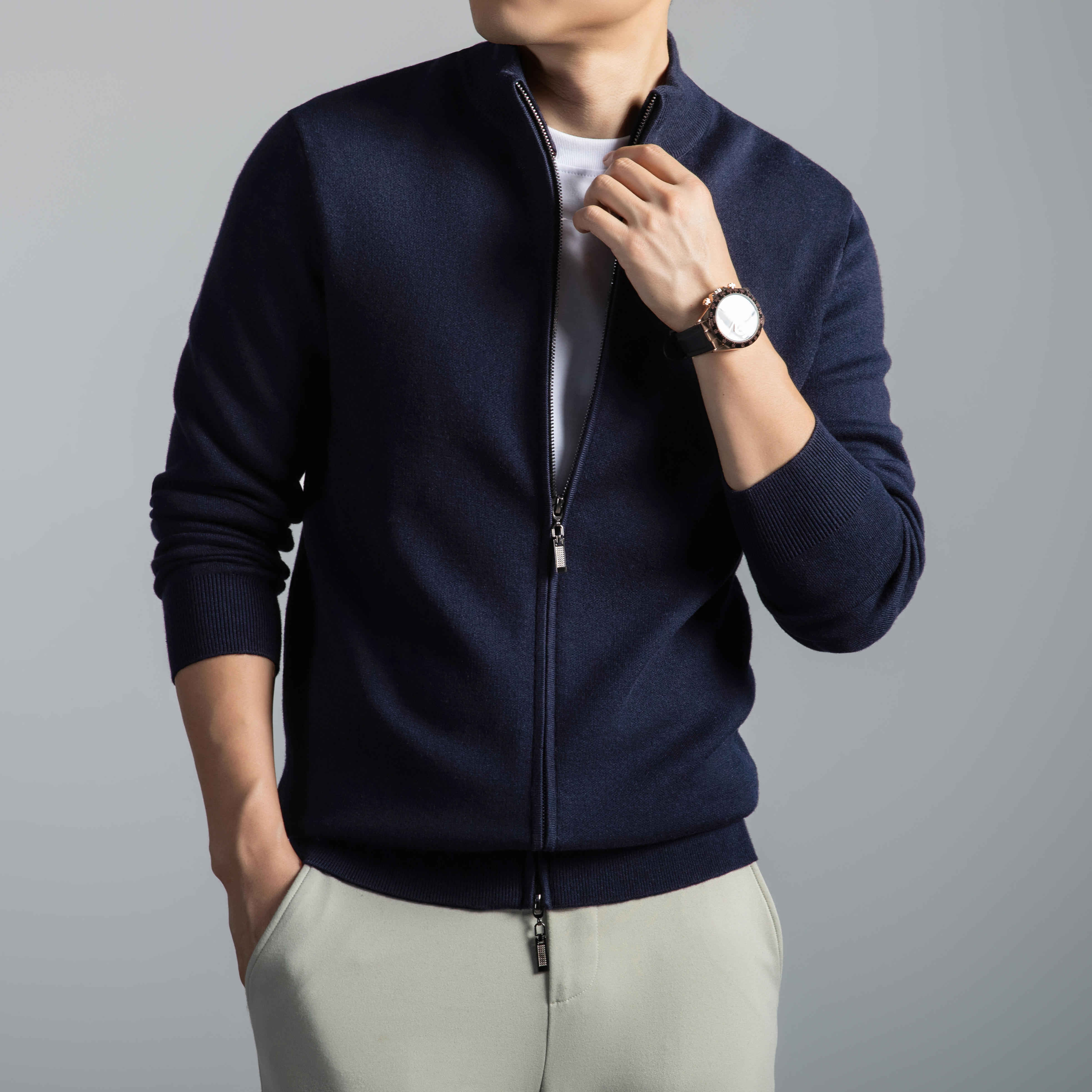 恒源祥男士含羊毛针织开衫毛衣2025秋冬新款加厚立领羊毛衫外套男