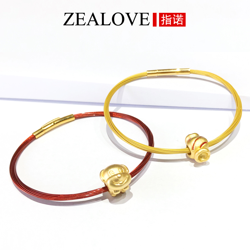 转运珠串珠手绳穿3d硬金黄金皮绳手链女黑指诺本命年钢丝编织红绳