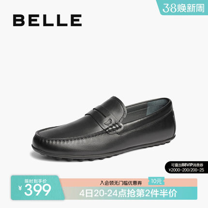 百丽男鞋子一脚蹬休闲豆豆鞋春夏季新款软底爸爸商务皮鞋A1820AM5