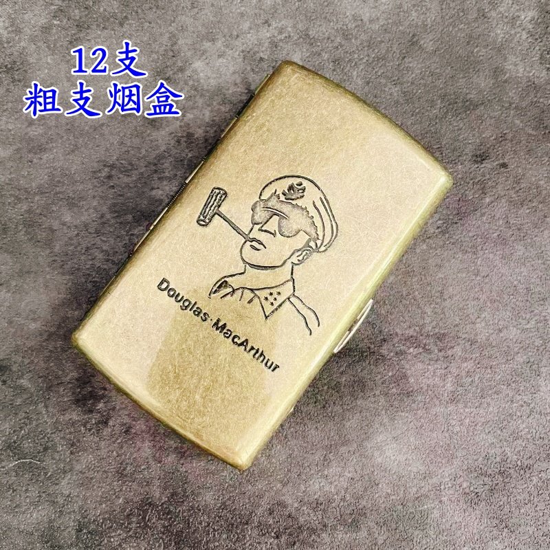 2024复古青铜色烟盒12支装便携雕刻男士翻盖经典金属抗压烟盒送礼