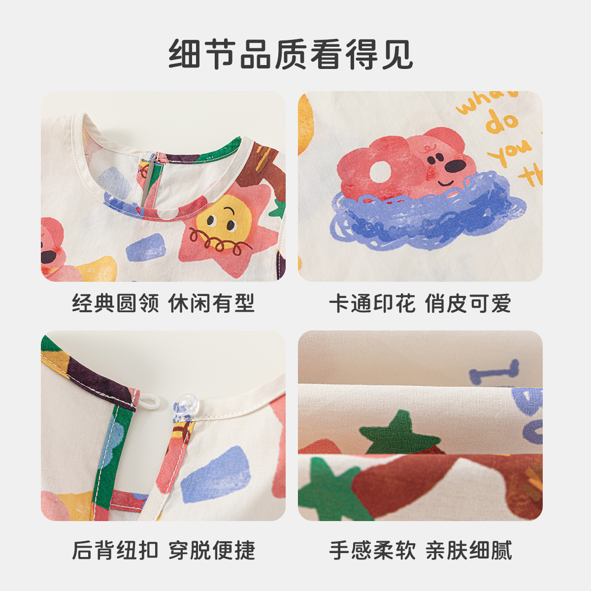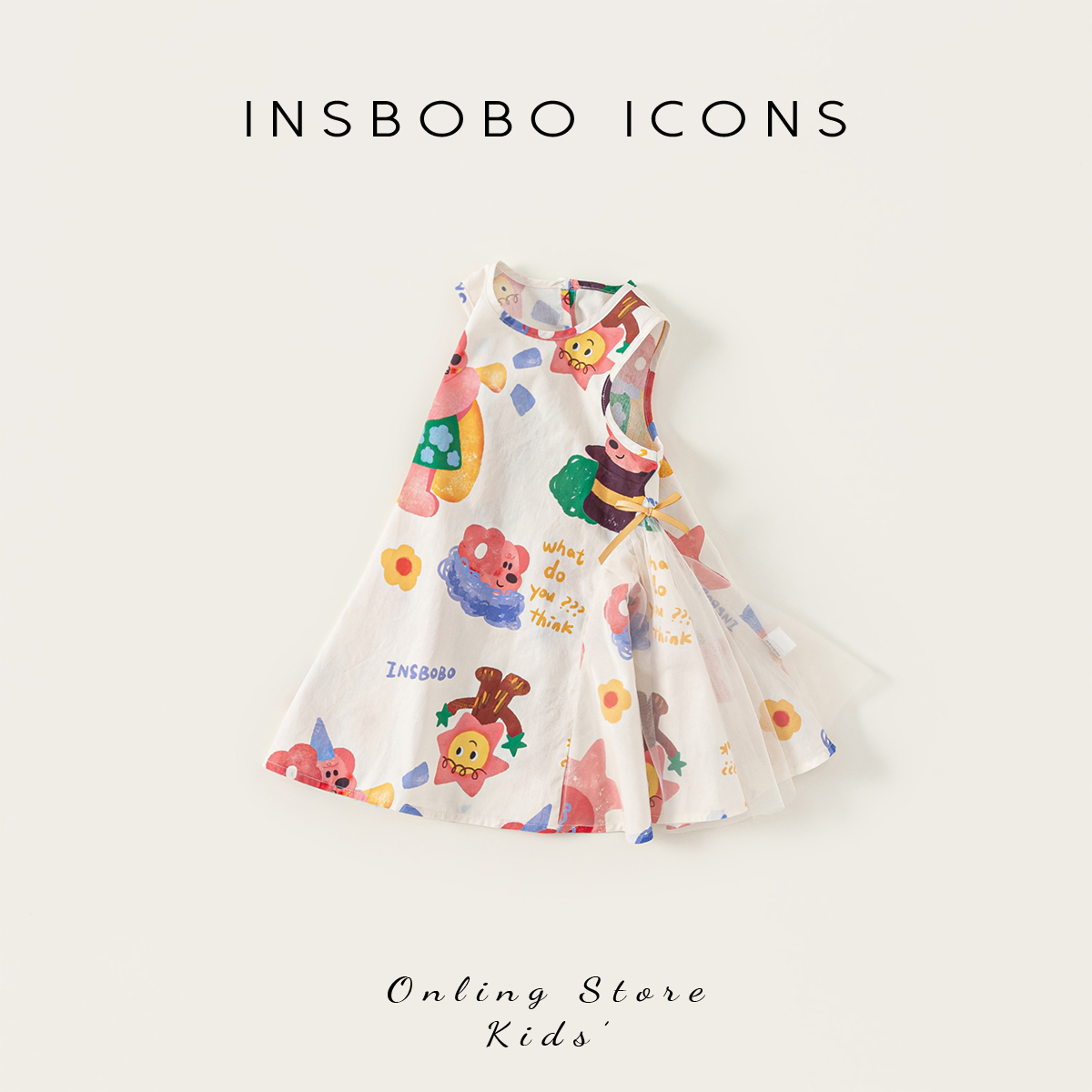 INSbobo女童连衣裙夏2025新款女宝涂鸦裙儿童公主裙夏季宝宝衣服