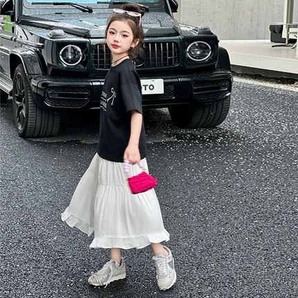 女童夏装套装2024新款女大童纯棉休闲短袖半身裙子儿童夏季两件套