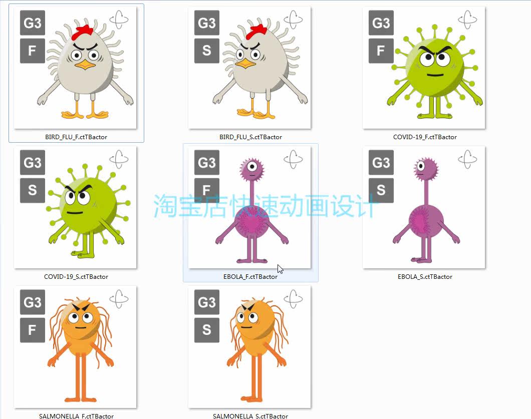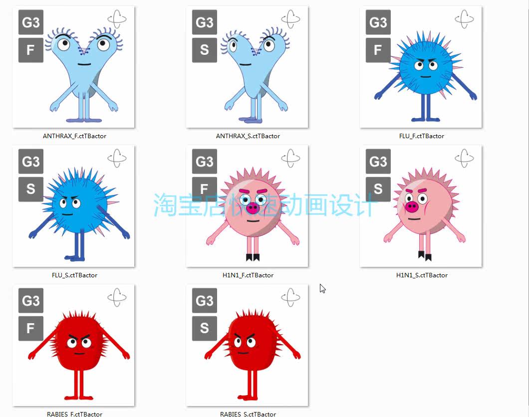 CTA卡通素材G3模型病毒角色包含多种病毒角色新冠病毒可360度观看