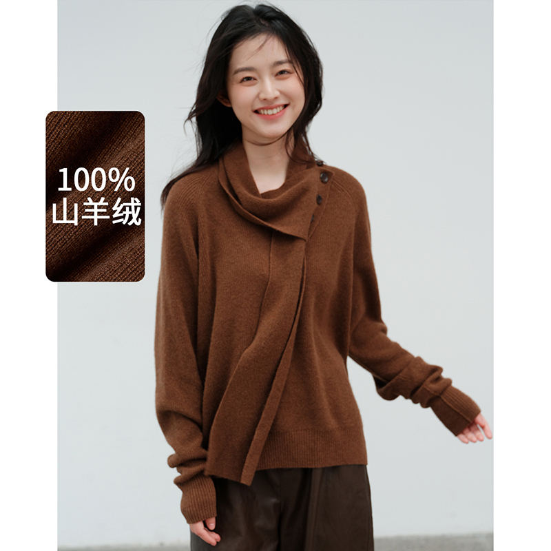 思诺芙德V领带围巾两件套100%山羊绒衫女2025秋冬新款针织毛衣