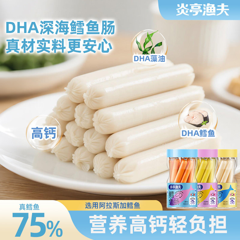 炎亭渔夫鳕鱼肠即食鱼肉肠无儿童添加DHA藻油休闲解馋小零食香肠