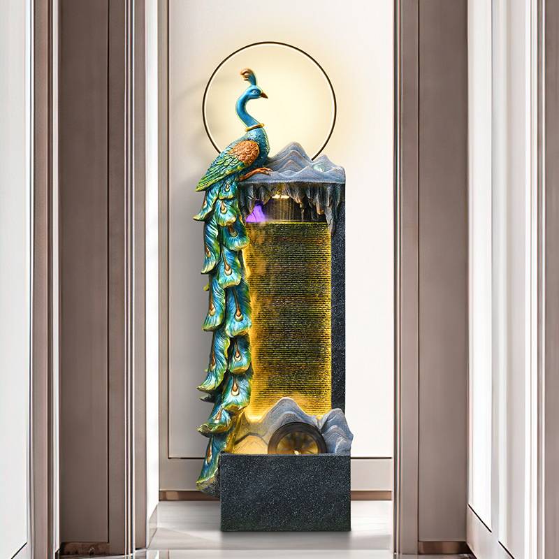 新中式流水喷泉入户玄关客厅招财孔雀装饰大型落地景观开业摆件