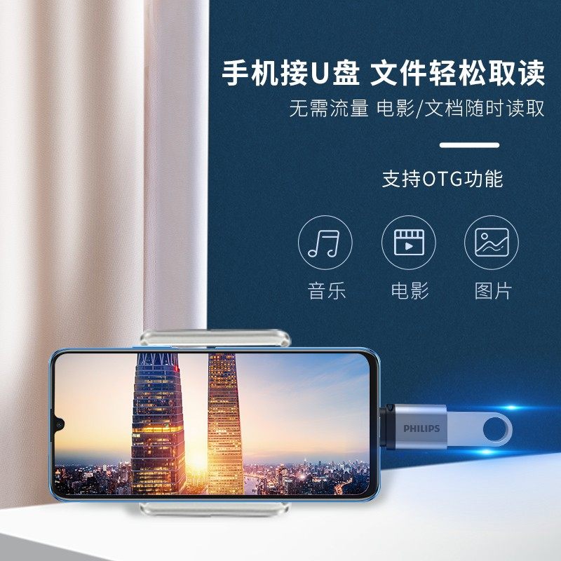 飞利浦Type-C转USB3.0转接头接U盘OTG数据线 Macbook电脑平板接硬盘键鼠拓展连接器转换手机平板