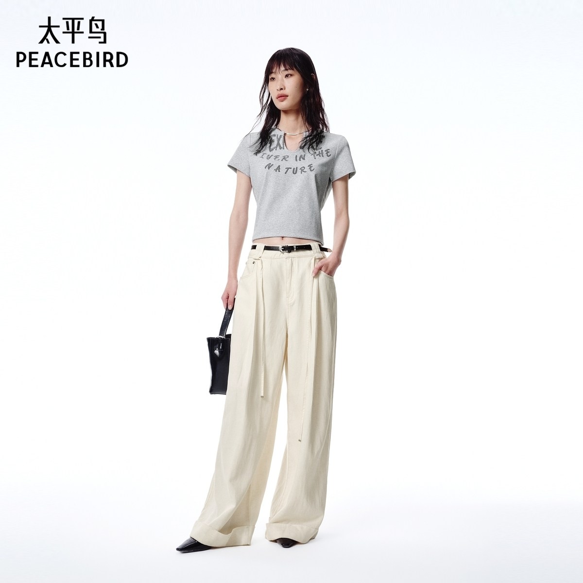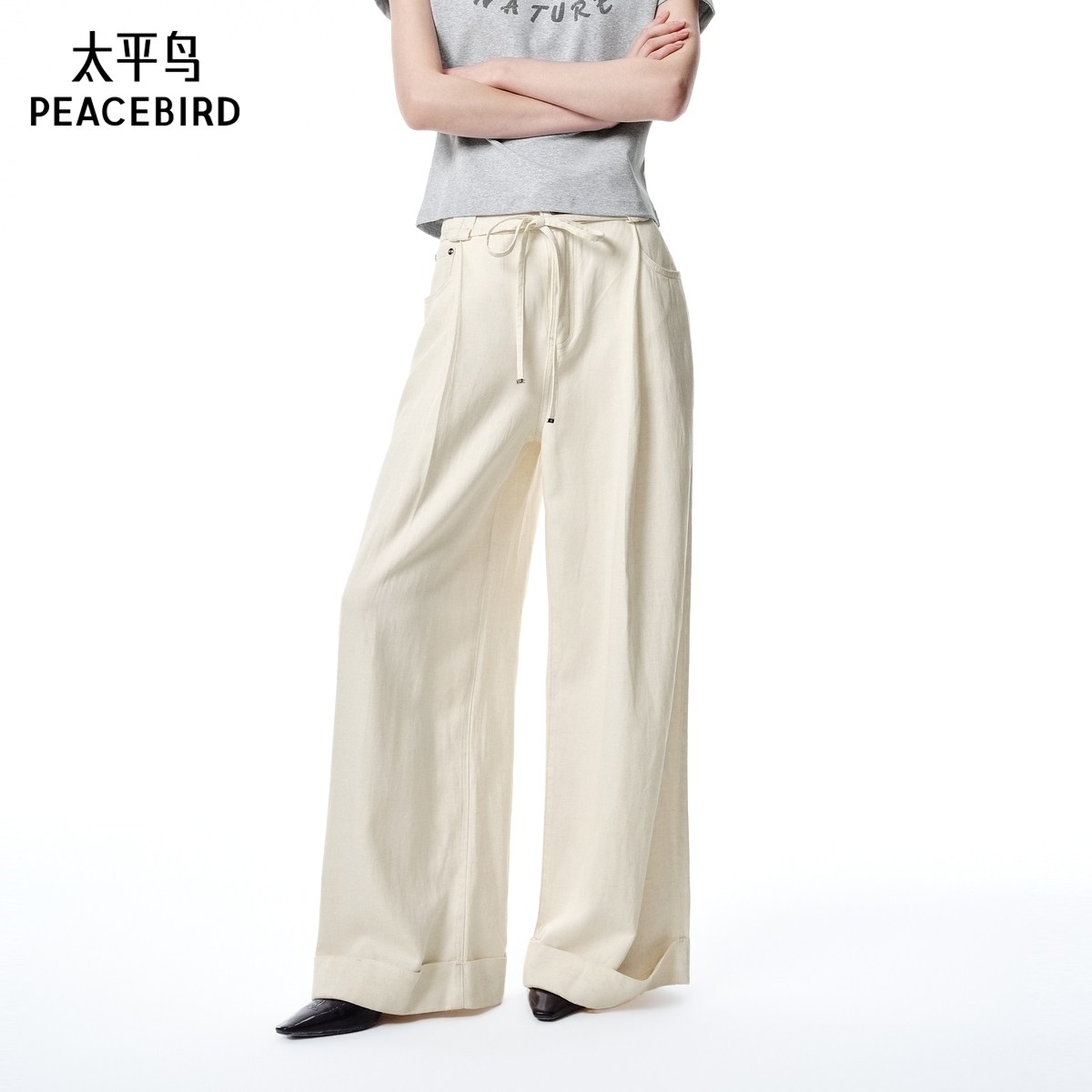【商场同款】太平鸟女装2025夏季新款垂感阔腿牛仔裤A1HAF2497