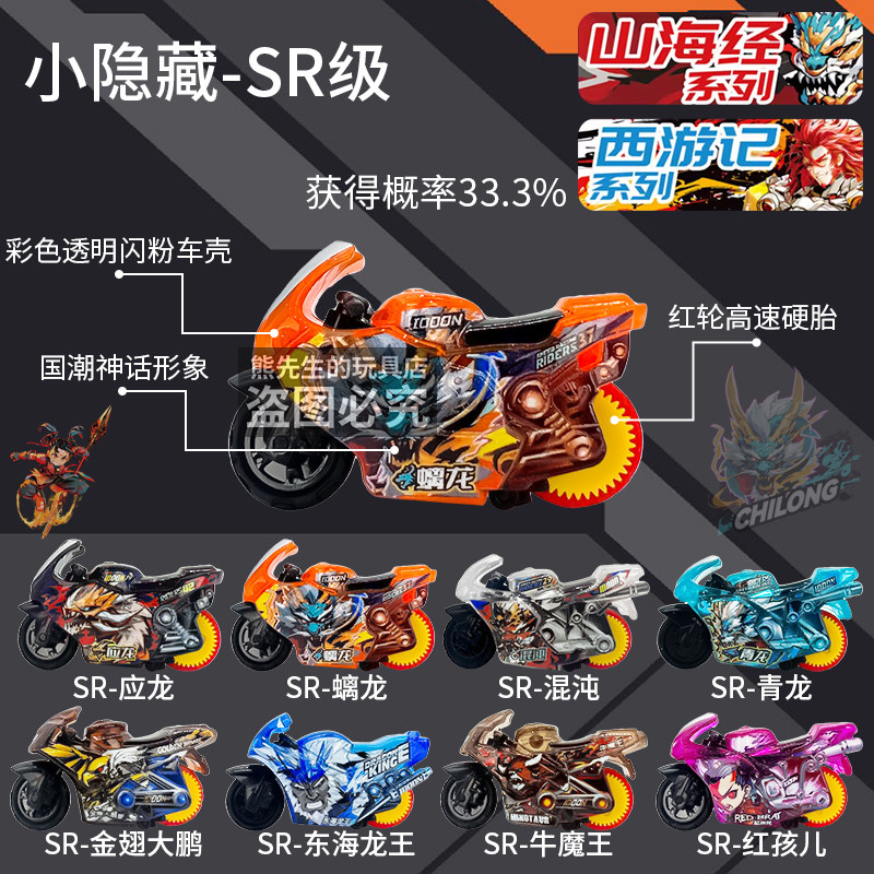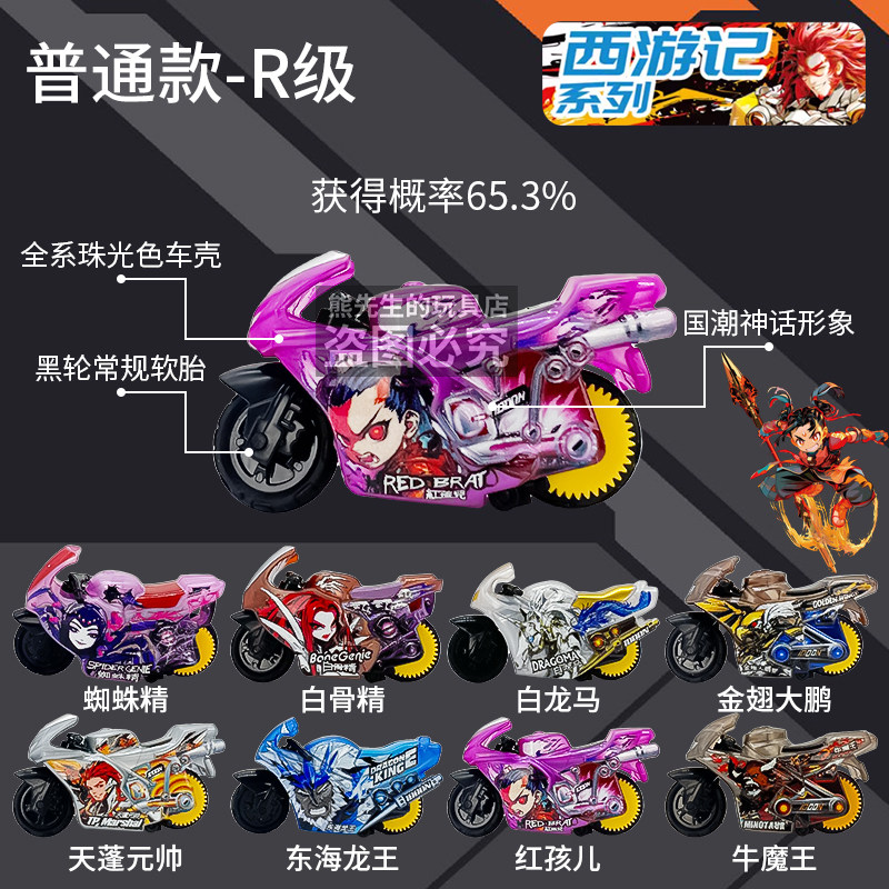 新款爱动飕狗摩托车西游记盲盒山海经搜狗摩托惯性男孩玩具礼物