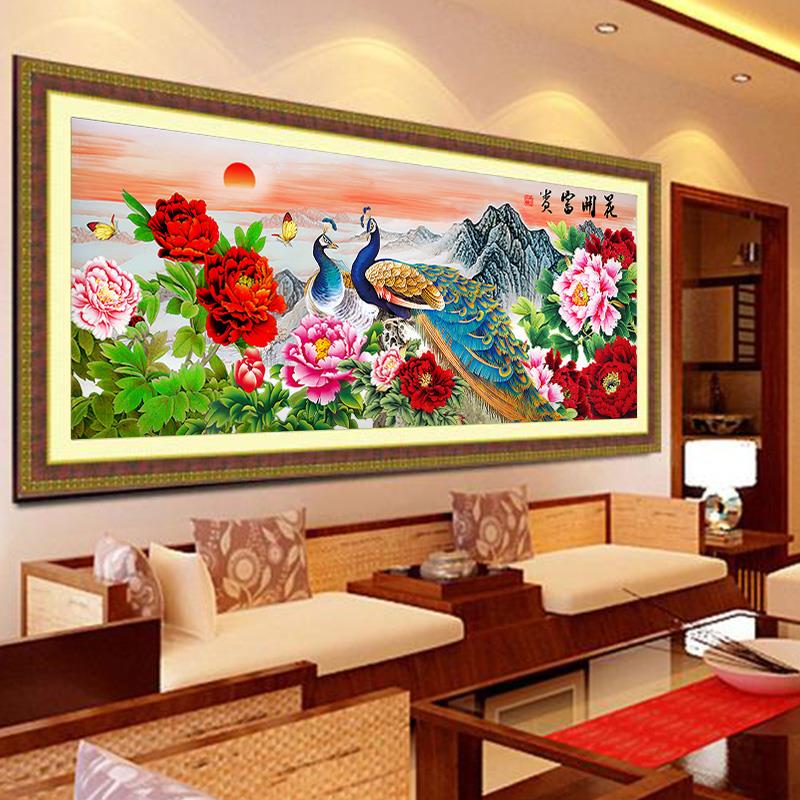 5d钻石画满钻孔雀大幅客厅贴钻十字绣2024新款风景花开富贵钻石绣