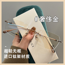 蝶形钛架无边金丝切边框轻盈眼镜奢华玫金色平光配蔡司近视度数镜