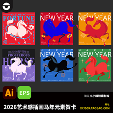 2026马年艺术感抽象马图形海报新春元旦贺卡元素AI矢量文件EPS