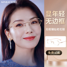 女士老花镜品牌高档正品官方旗舰店超轻纯钛无框时尚洋气新款女款
