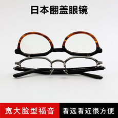 日本眼镜可上翻近视眼镜框男配老花镜男款翻盖眼镜架纯钛板材宽脸