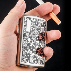 超薄20支装自动弹烟盒打火机一体便携男士粗中支抗压防潮个性定制