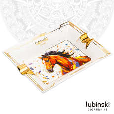 鲁宾斯基2026马年纪念款陶骨瓷雪茄烟灰缸两槽高档持灰器时尚礼盒
