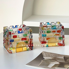 方形透明玻璃烟灰缸家用高颜值水晶烟缸雪茄烟缸青苹果水晶烟灰缸