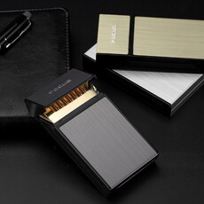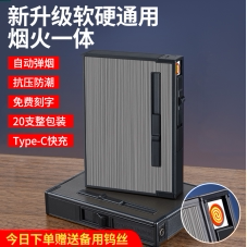 20支装铝合金烟盒充电打火机一体便携男创意防风软硬翻盖高档抗压