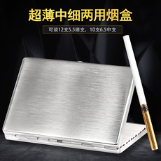 超薄不锈钢香烟盒粗支烟细支烟通用男士女士烟盒加长银色便携烟夹