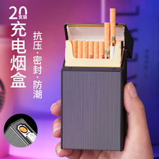 充电防风打火机烟盒一体防潮烟盒子保护套大容量烟火密封铝合金